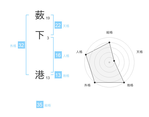 薮下 港さんの総格は35画の4点!