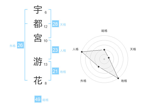 宇都宮 游花さんを姓名の画数から五運を鑑定
