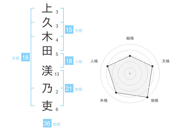 上久木田 渼乃吏さんの天格は15画の4点!