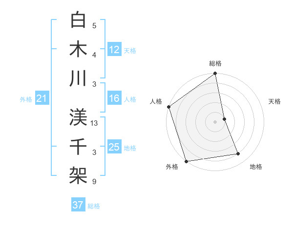 白木川 渼千架さんの総格は37画の5点!
