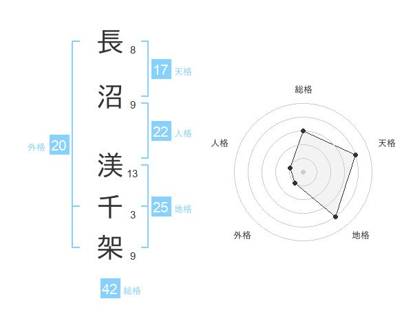 長沼 渼千架さんを姓名の画数から五運を鑑定