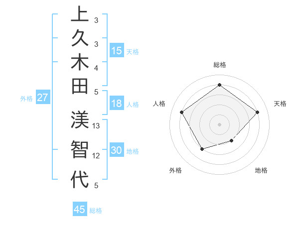 上久木田 渼智代さんの総格は45画の4点!