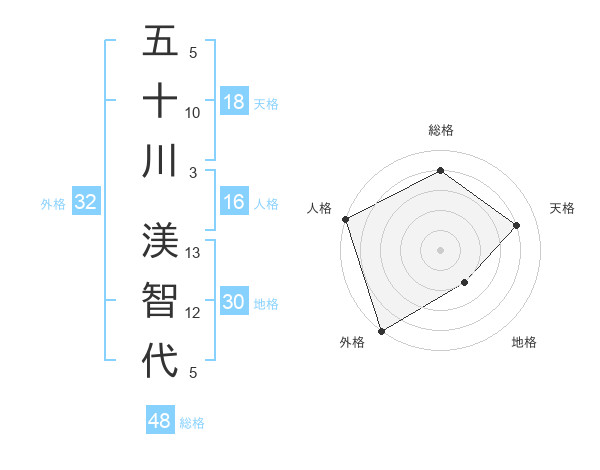 五十川 渼智代さんを姓名の画数から五運を鑑定