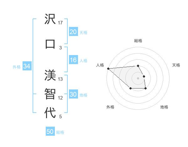 沢口 渼智代さんを姓名の画数から五運を鑑定