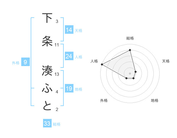 下条 湊ふとさんを姓名の画数から五運を鑑定