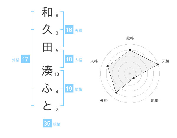 和久田 湊ふとさんを姓名の画数から五運を鑑定