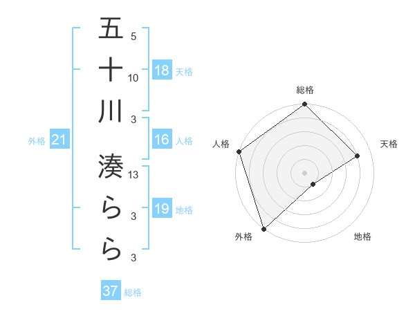 五十川 湊ららさんの総格は37画の5点