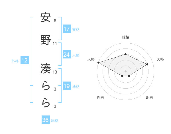 安野 湊ららさんの総格は36画の3点