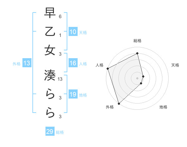 早乙女 湊ららさんを姓名の画数から五運を鑑定