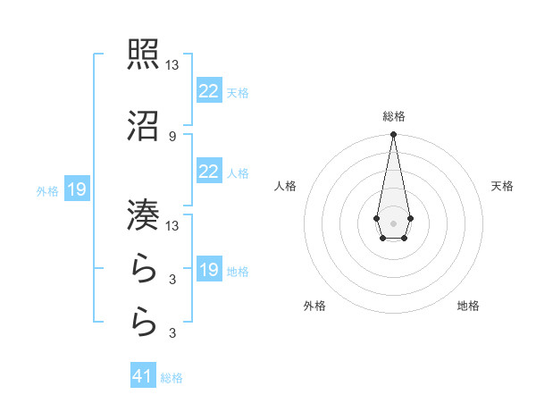 照沼 湊ららさんの総格は41画の5点!