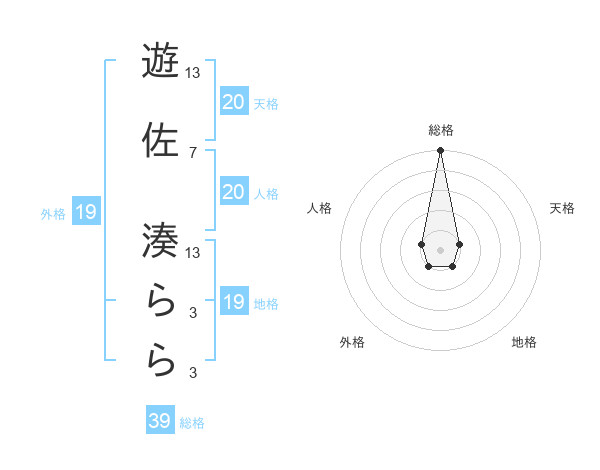遊佐 湊ららさんの総格は39画の5点!