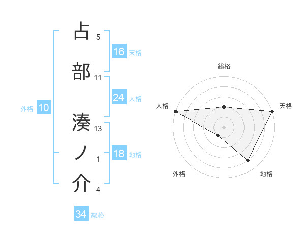 占部 湊ノ介さんを姓名の画数から五運を鑑定