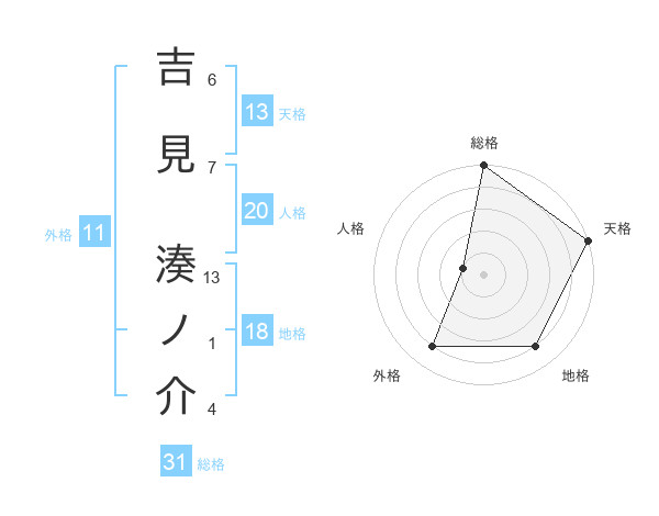 吉見 湊ノ介さんを姓名の画数から五運を鑑定