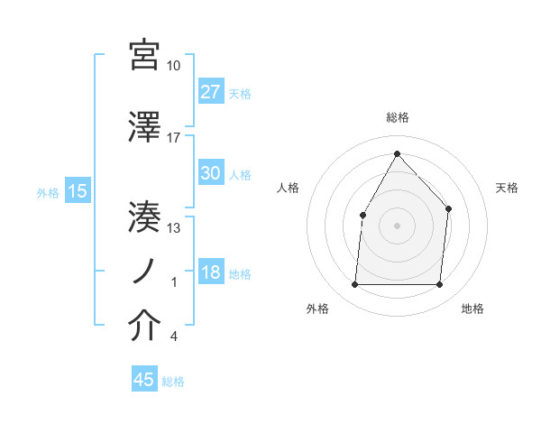 宮澤 湊ノ介さんの総格は45画の4点!