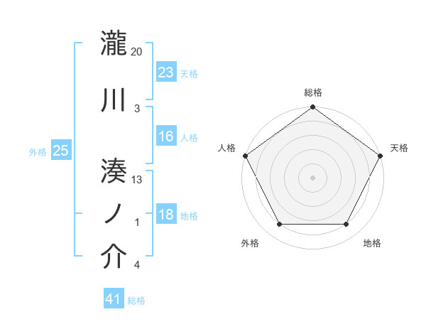 瀧川 湊ノ介さんを姓名の画数から五運を鑑定