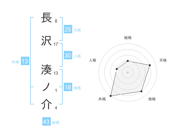 長沢 湊ノ介さんを姓名の画数から五運を鑑定