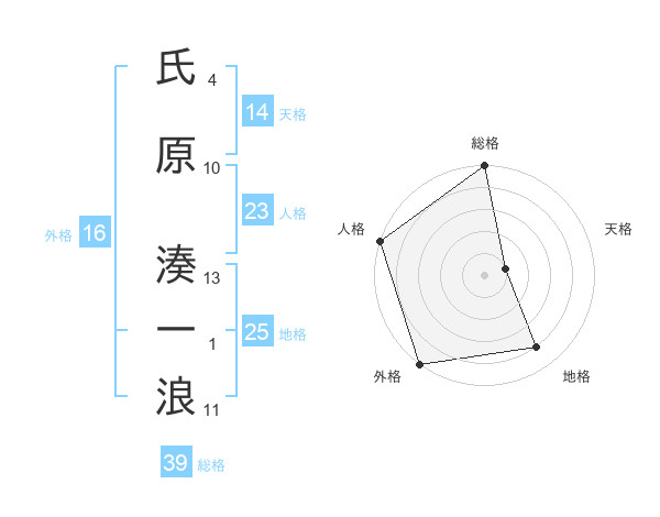 氏原 湊一浪さんを姓名の画数から五運を鑑定