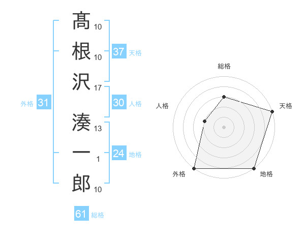 髙根沢 湊一郎さんを姓名の画数から五運を鑑定