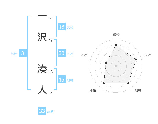 一沢 湊人さんの総格は33画の4点!
