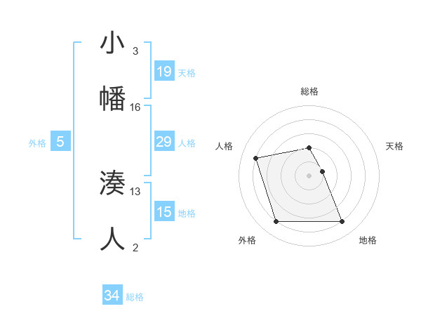小幡 湊人さんの総格は34画の2点!