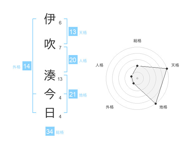 伊吹 湊今日さんの天格は13画の5点