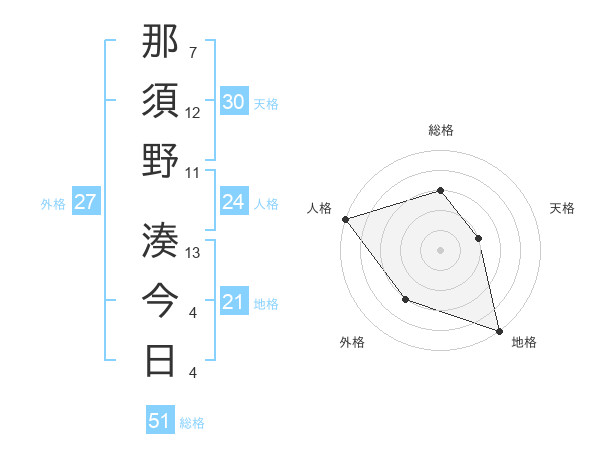 那須野 湊今日さんを姓名の画数から五運を鑑定