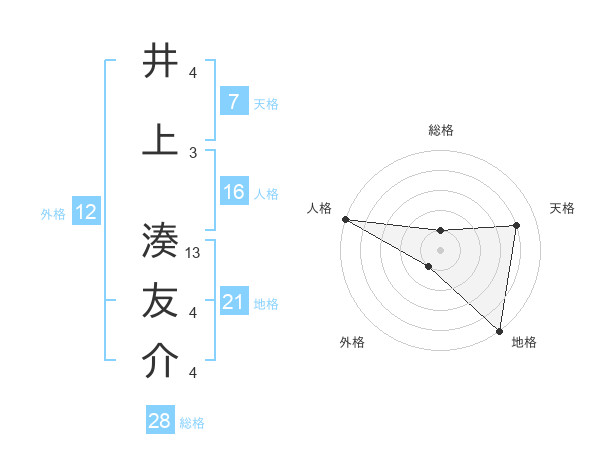 井上 湊友介さんを姓名の画数から五運を鑑定