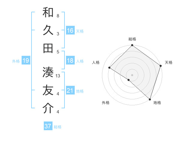 和久田 湊友介さんの総格は37画の5点!