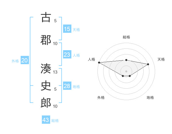 古郡 湊史郎さんの総格は43画の2点!
