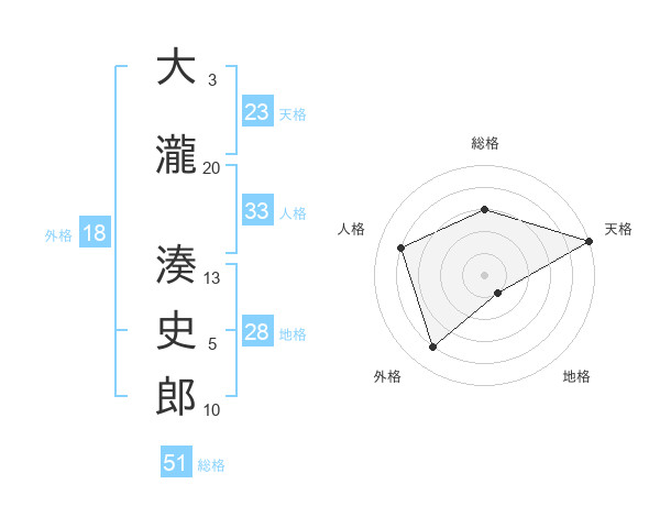 大瀧 湊史郎さんの総格は51画の3点!