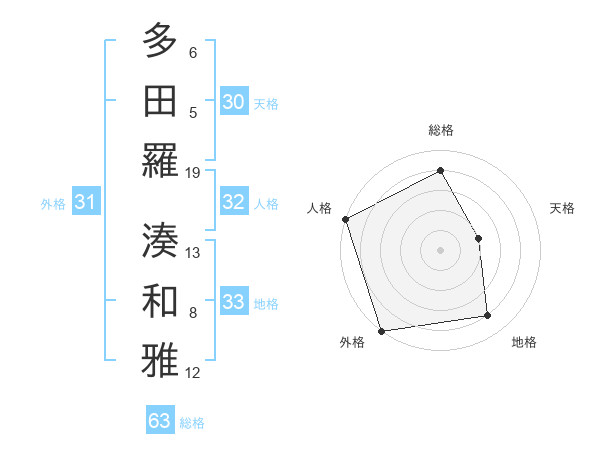 多田羅 湊和雅さんの総格は63画の4点!