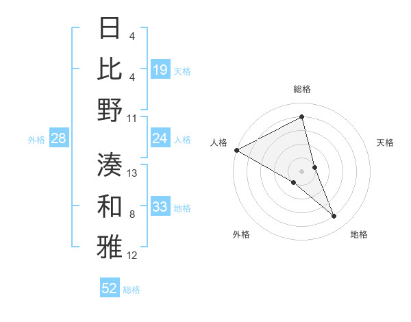 日比野 湊和雅さんを姓名の画数から五運を鑑定