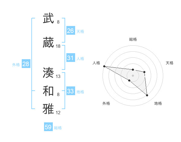 武蔵 湊和雅さんを姓名の画数から五運を鑑定