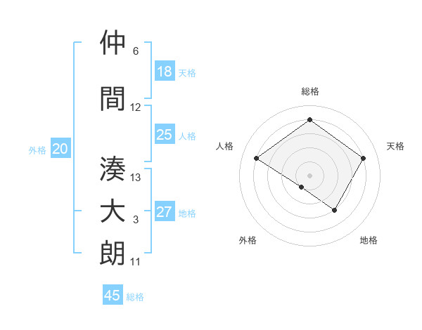 仲間 湊大朗さんの総格は45画の4点!
