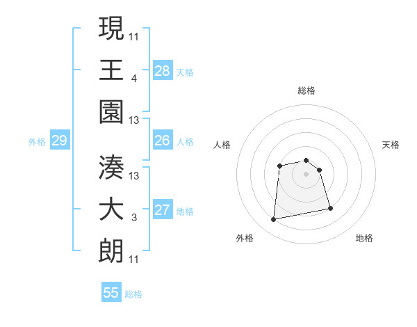 現王園 湊大朗さんを姓名の画数から五運を鑑定