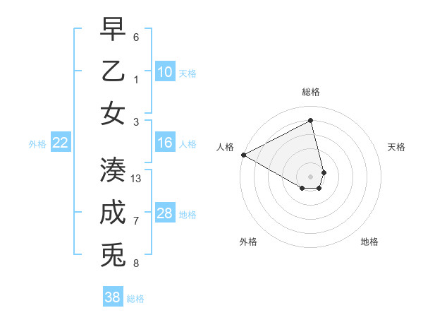 早乙女 湊成兎さんを姓名の画数から五運を鑑定