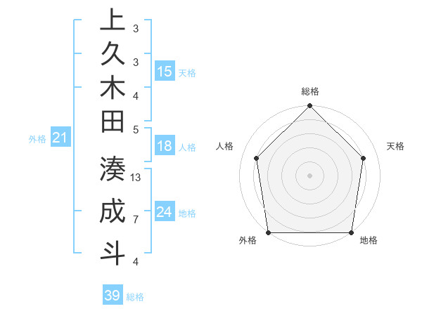 上久木田 湊成斗さんを姓名の画数から五運を鑑定