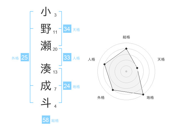 小野瀬 湊成斗さんを姓名の画数から五運を鑑定