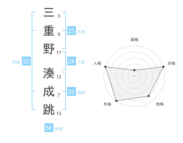 三重野 湊成跳さんを姓名の画数から五運を鑑定