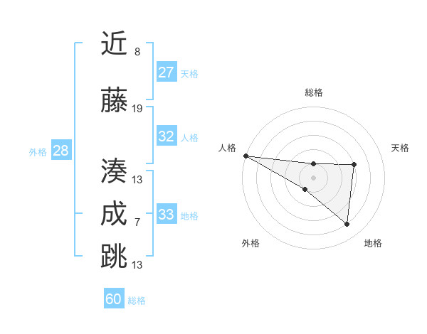 近藤 湊成跳さんを姓名の画数から五運を鑑定