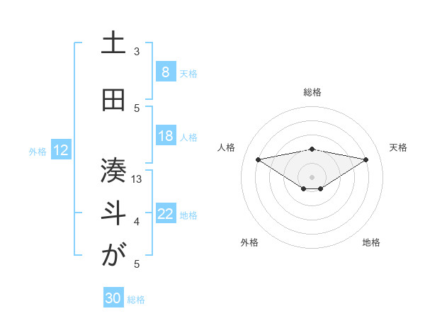 土田 湊斗がさんの地格は22画の1点!