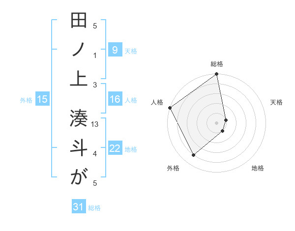 田ノ上 湊斗がさんを姓名の画数から五運を鑑定