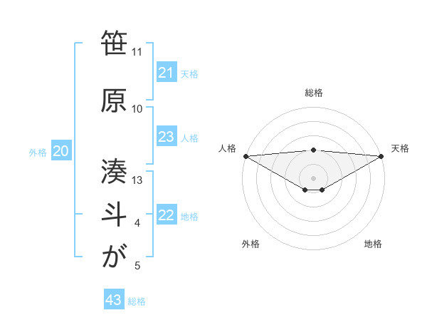笹原 湊斗がさんの天格は21画の5点!