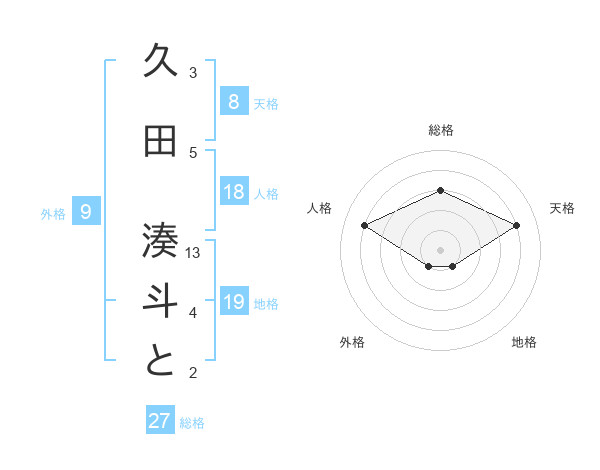 久田 湊斗とさんを姓名の画数から五運を鑑定