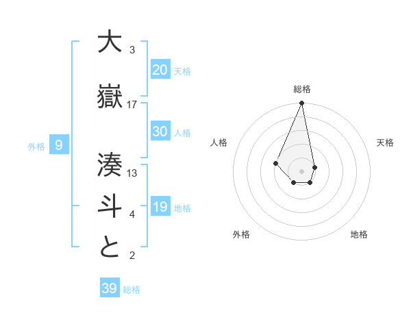 大嶽 湊斗とさんを姓名の画数から五運を鑑定