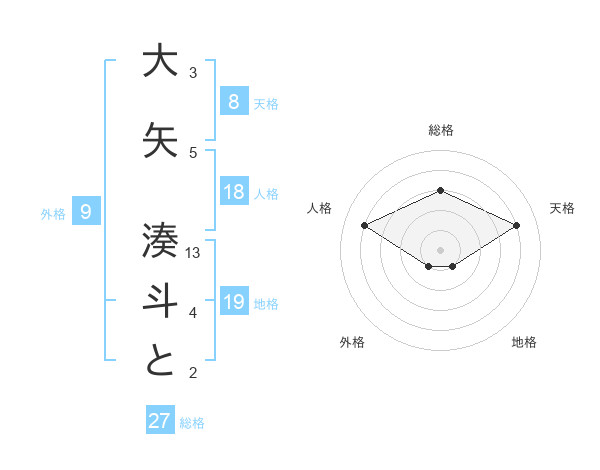 大矢 湊斗とさんを姓名の画数から五運を鑑定