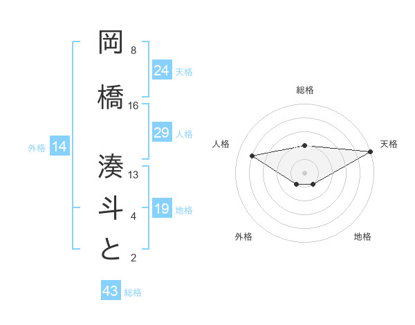 岡橋 湊斗とさんを姓名の画数から五運を鑑定