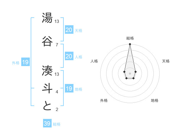 湯谷 湊斗とさんの総格は39画の5点!