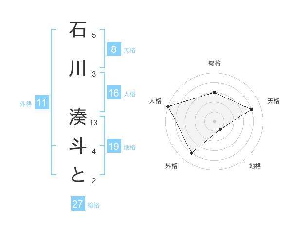 石川 湊斗とさんを姓名の画数から五運を鑑定