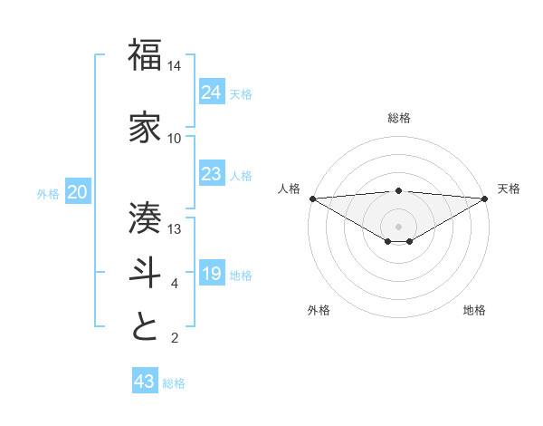 福家 湊斗とさんを姓名の画数から五運を鑑定